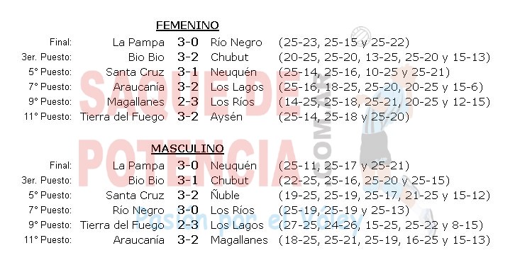 Los seleccionados pampeanos femenino y masculino se consagraron campeones de los XXXII Juegos Binacionales de La Araucanía. En la final las chicas (foto) derrotaron en sets corridos a Río Negro (25-23, 25-15 y 25-22) y los varones superaron 3-0 a Neuquén (25-11, 25-17 y 25-21). El bronce en ambas ramas fue para Bio Bio.