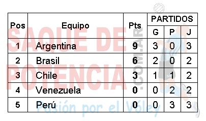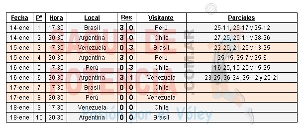 A primera hora, Chile logró su primera victoria en el certamen tras superar a Perú en sets corridos (25-16, 25-15 y 25-15) y este sábado se enfrenta al poderoso Brasil.