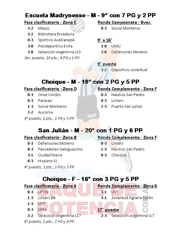 En damas, Choique se situó en la 18ª colocación con tres victorias y cinco derrotas.